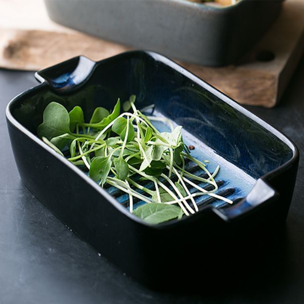 Ice Crack Blue Glaze Ceramic Steak/Cake Plate