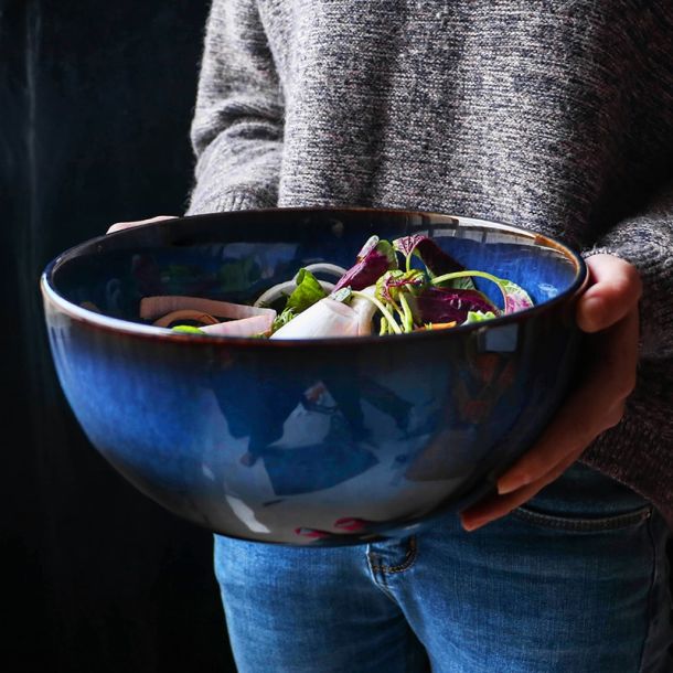 Deep Blue Ceramic Salad Bowl – 2400 ml (2400ml)