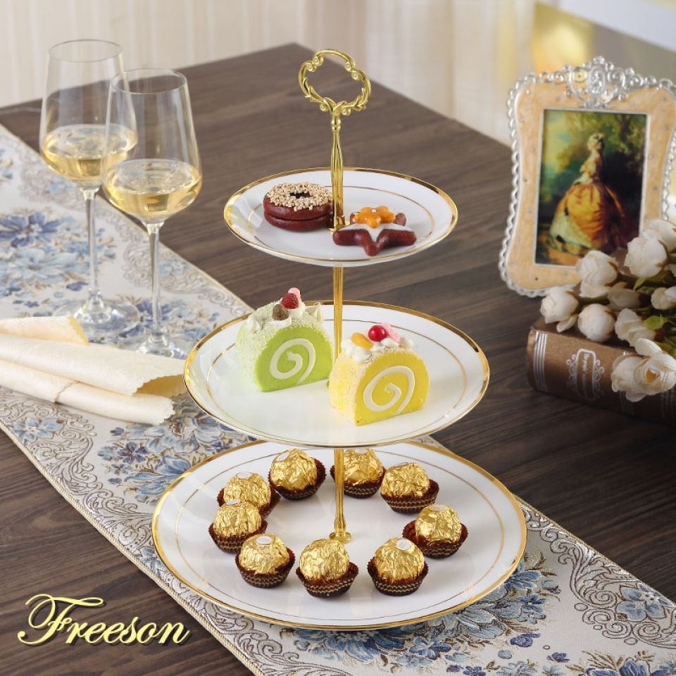 Freeson brings before you Triple Decker White Bone China Plate Set. Calcined bone ash is used in the production of bone china and makes up about 50% by weight of the final body recipe. The top-grade material adds to the value of this precious crockery.