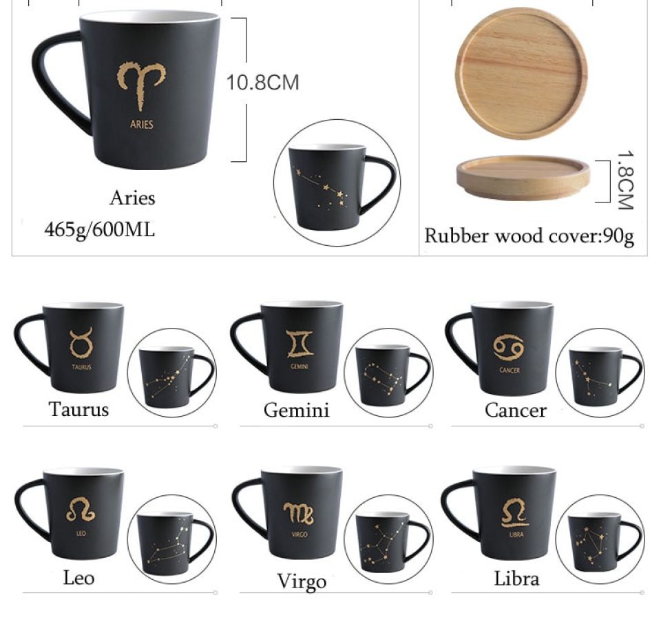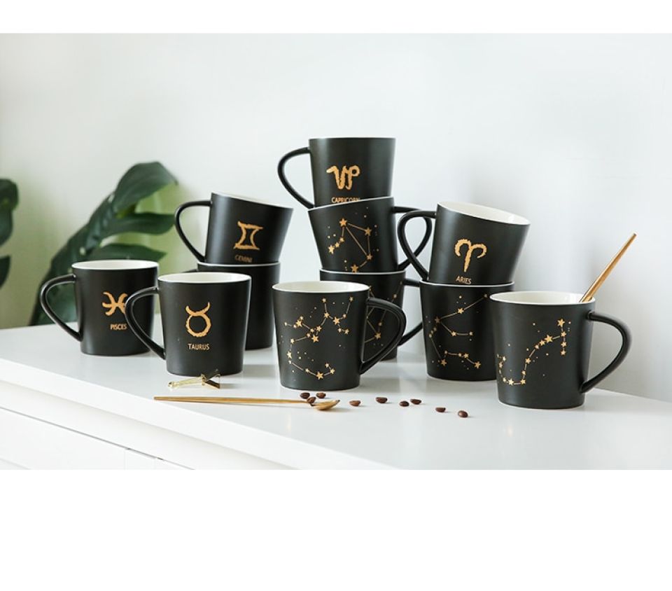 Tags: 12, Black, Ceramic, Golden, Mug, Zodiac