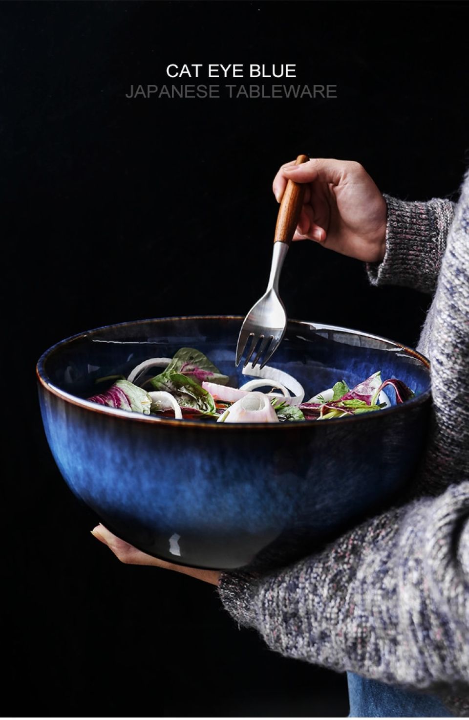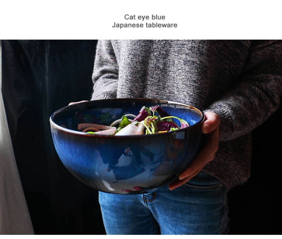 - Food is not just a necessity, it’s the element that can make or break our mood. Having your meals in elegant crockery can give you a whole new level of satisfaction and this is the reason you should check out our cat eye blue salad bowl. Inspired by the Japanese culture, this bowl has a minimalist design with a large volume of 500 mL. The Japanese have always focused on Ikigai, which means finding your value of life. The practice focuses on finding the true essence in the simplest joys of life. This bowl is designed with the very purpose of keeping your tableware simple yet effective. Available in a unique blue shade, this bowl will suit every dining table and will stand out against every other tableware.
