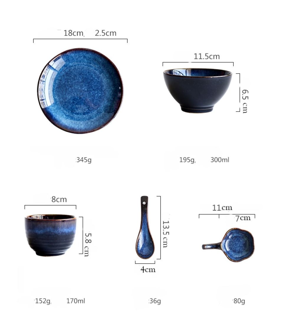Deep Blue Ceramic Dinner Set – 5 Pieces/Set (as picture)