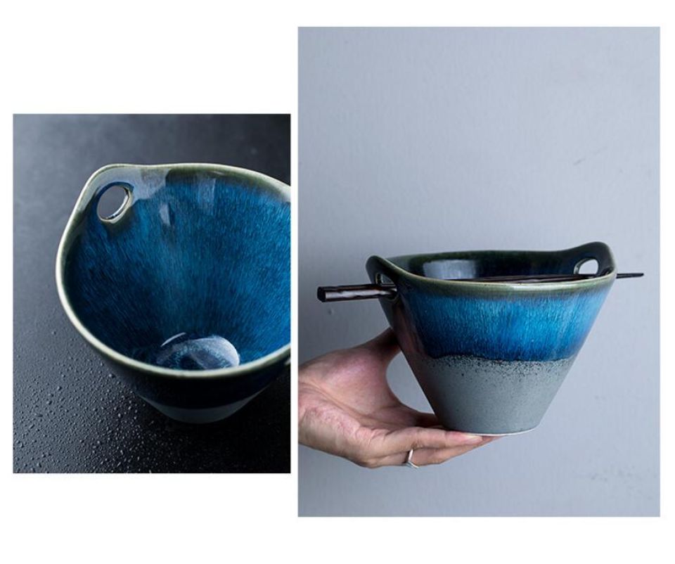 - How often have you spilled your noodles because your container was too inconvenient? Well, we know it must have happened a few times and you are not alone. As a solution to such annoying problems, here is our ceramic bowl with a handle. This one-of-a-kind bowl has a funnel-like shape with curved edges to prevent food spillage. Now you won’t be straining your clothes with soups anymore. Also, the bowl comes with a handle and a place for chopsticks and straws. It comes in two different colors and has a volume of 500 mL. It is lightweight, easy to carry, and sturdy. Be it to your office or on a holiday trip, you can carry this ceramic bowl everywhere.