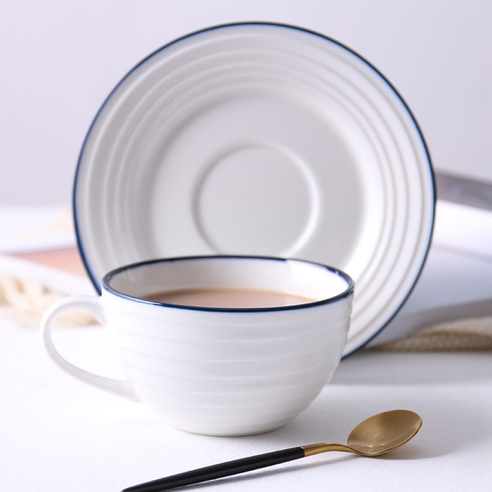 Deep Blue Lined Coffee Cup & Dish Set (cup and saucer)
