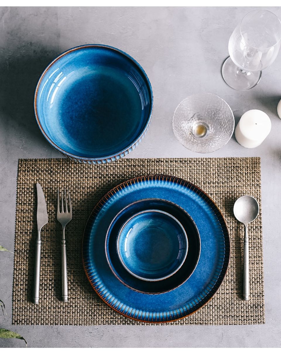 Freeson brings a Vintage blue ceramic dinnerware that simply stuns the mind of the viewer. An iconic set for a royal-like spread. This tableware has a vintage, retro touch to it which, essentially, makes it a treasure!