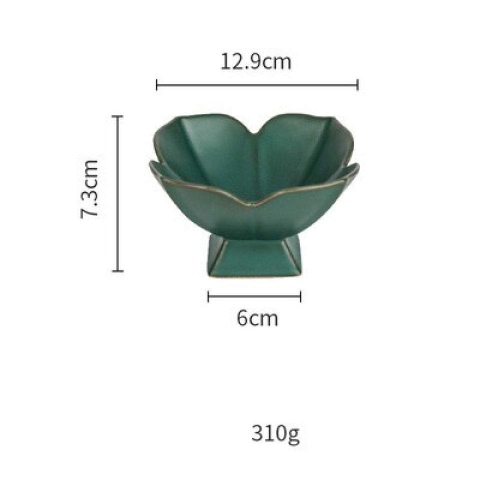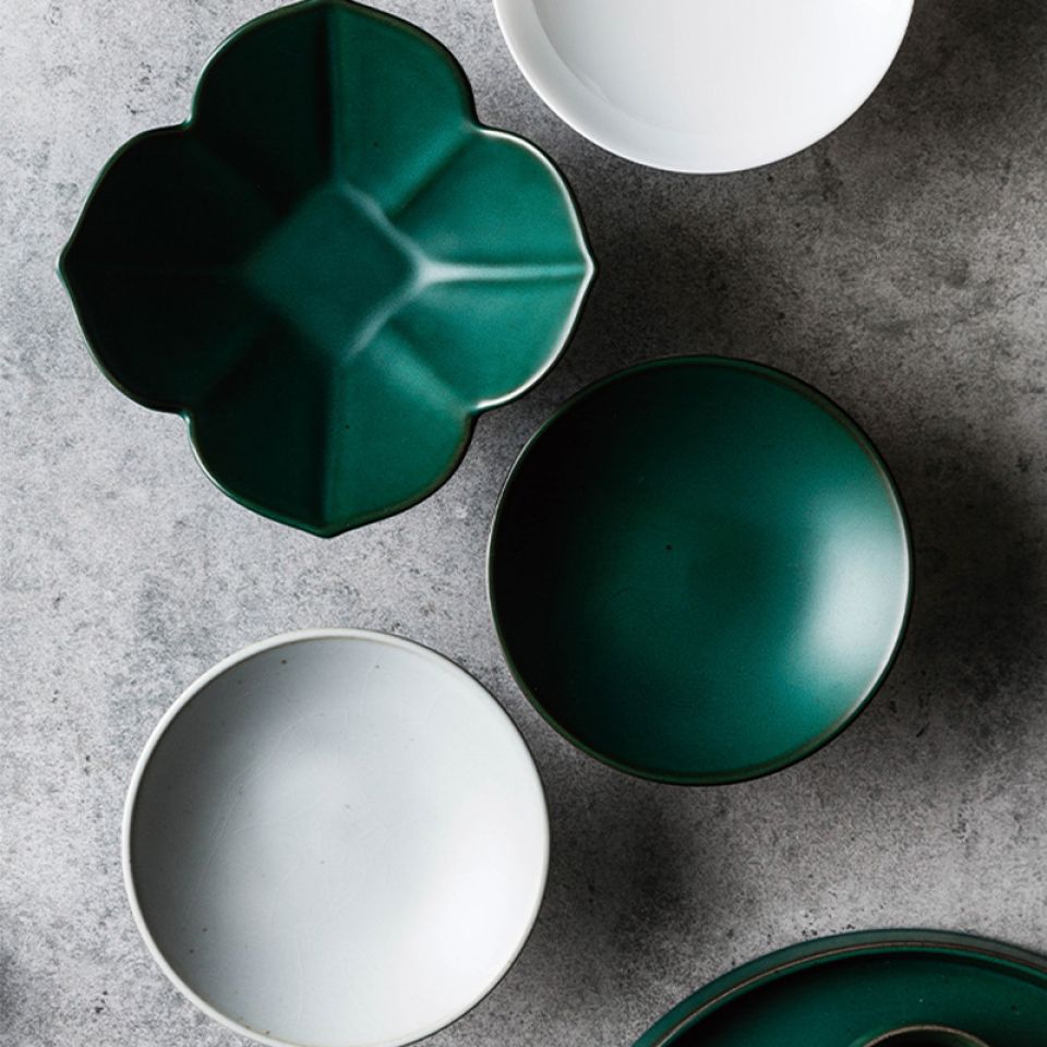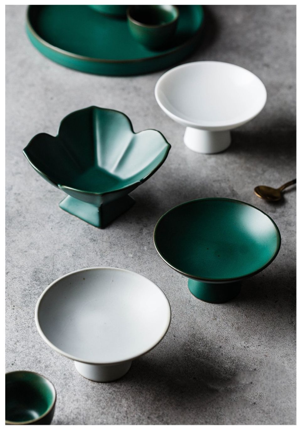 - The smaller bowls are round with an elevated stand at the base. They come in cotton white and pine green in color with a simple, smooth varnish. There are no embellishments or textures on the bowl which is the main element of its elegance.