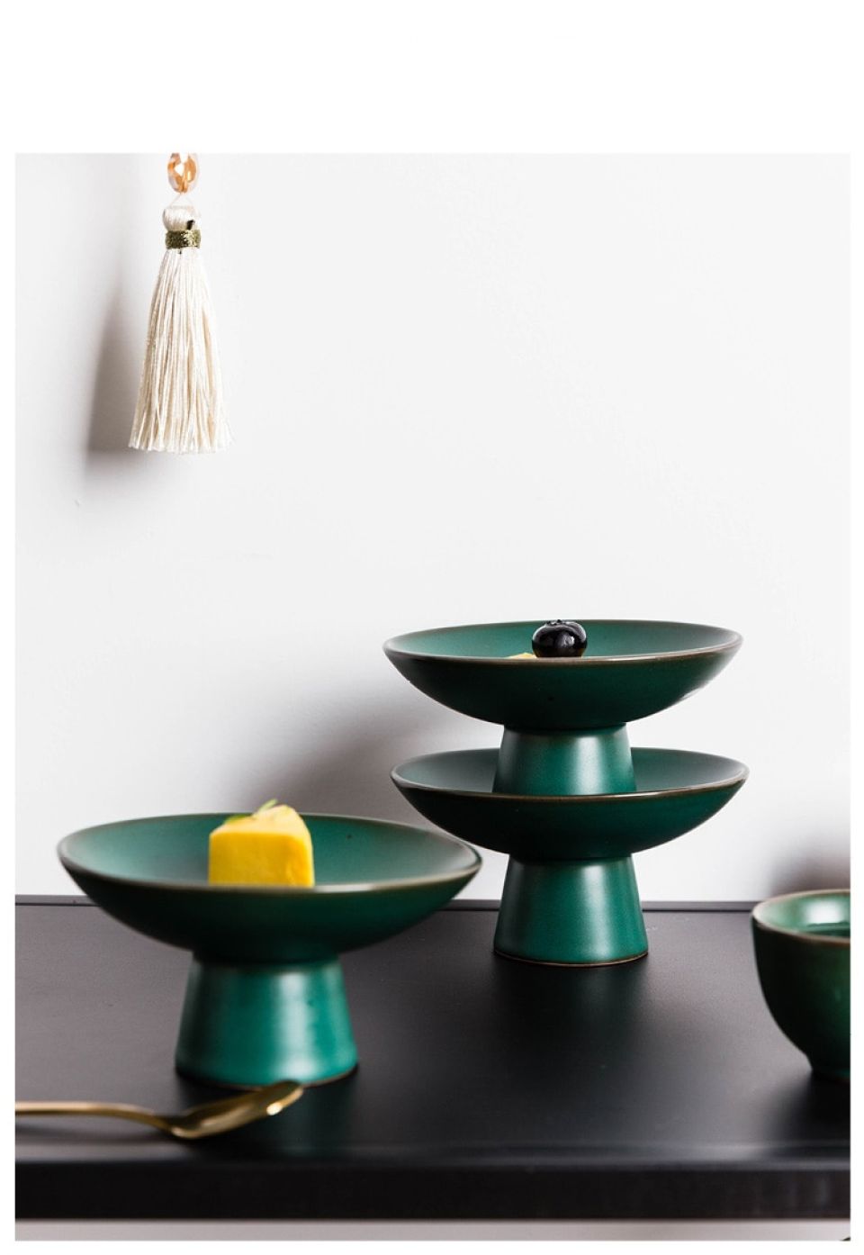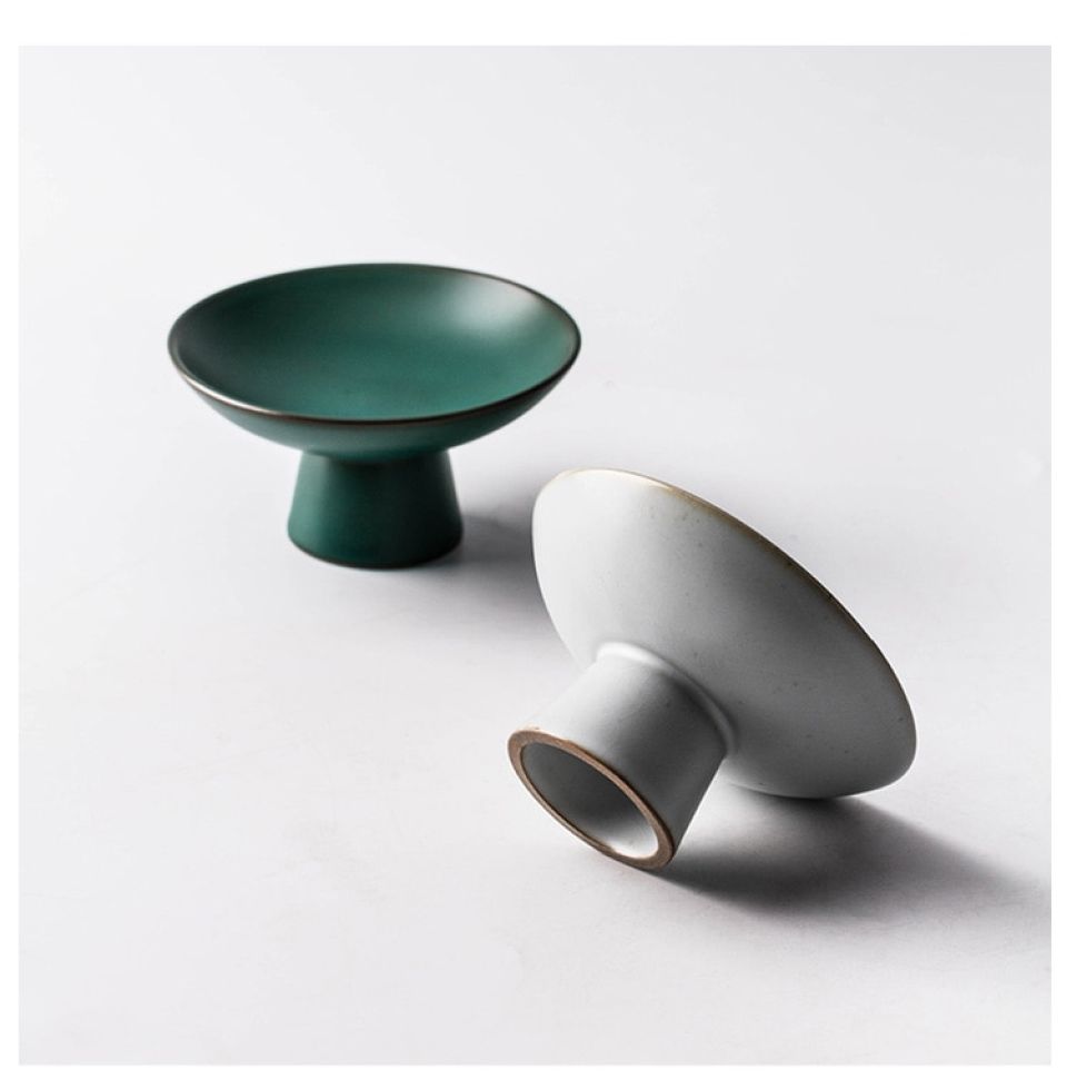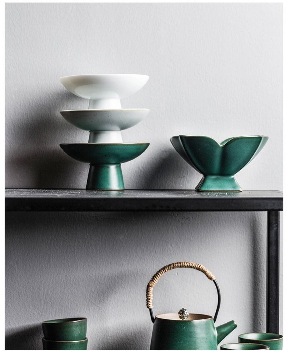 - The smaller bowls are round with an elevated stand at the base. They come in cotton white and pine green in color with a simple, smooth varnish. There are no embellishments or textures on the bowl which is the main element of its elegance.