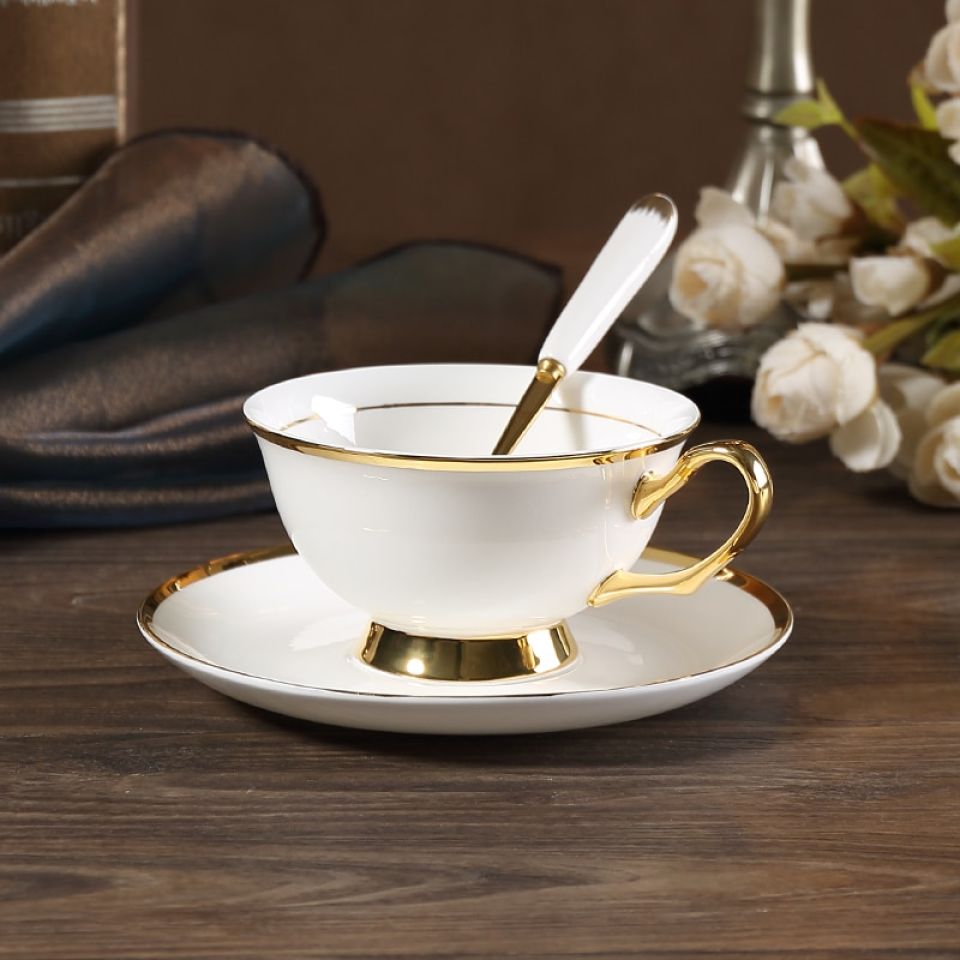 Gold Inlay Bone China Tea Cup Set
