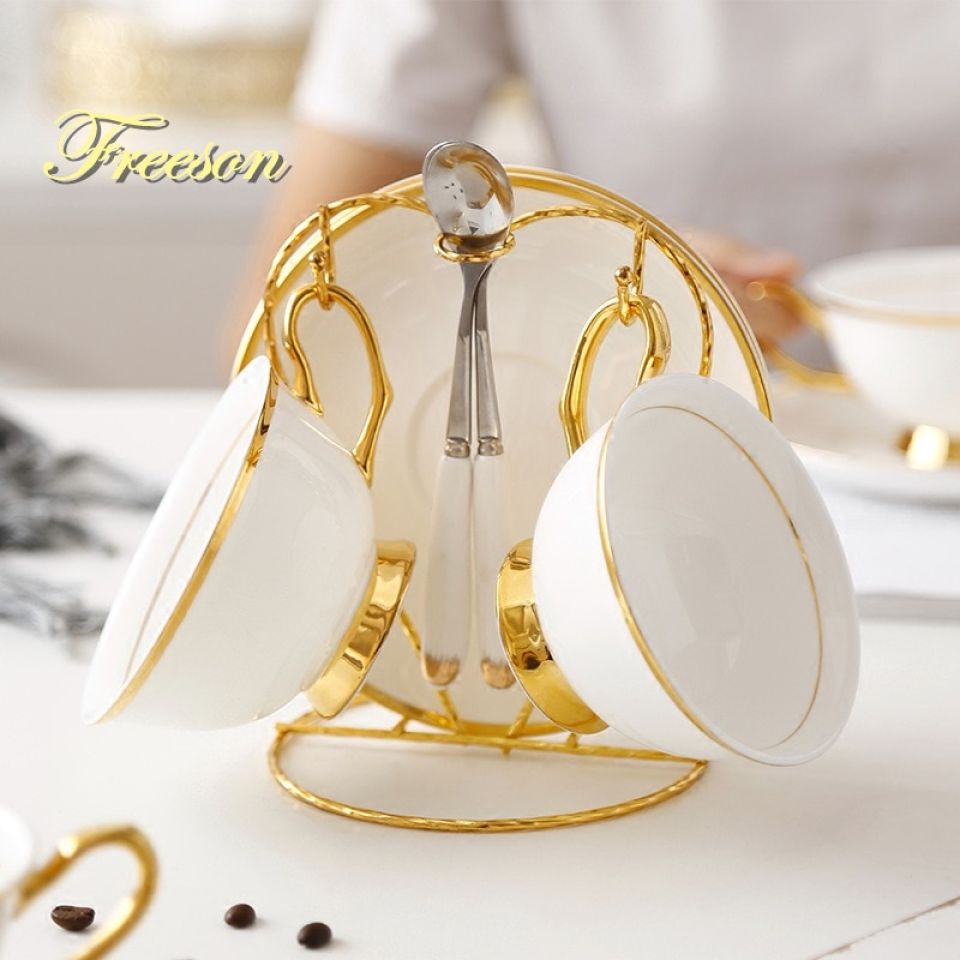 Freeson brings the top-notch quality teacup sets and the Gold Inlay China Tea Cup Set is one of them. Bone China is an excellent choice for your luxurious tea parties. Bone China is a hybrid hard-paste porcelain containing bone ash. Bone china is extremely hard, intensely white, and will allow light to pass through it. Strength is provided by the fusion of body ingredients during firing.