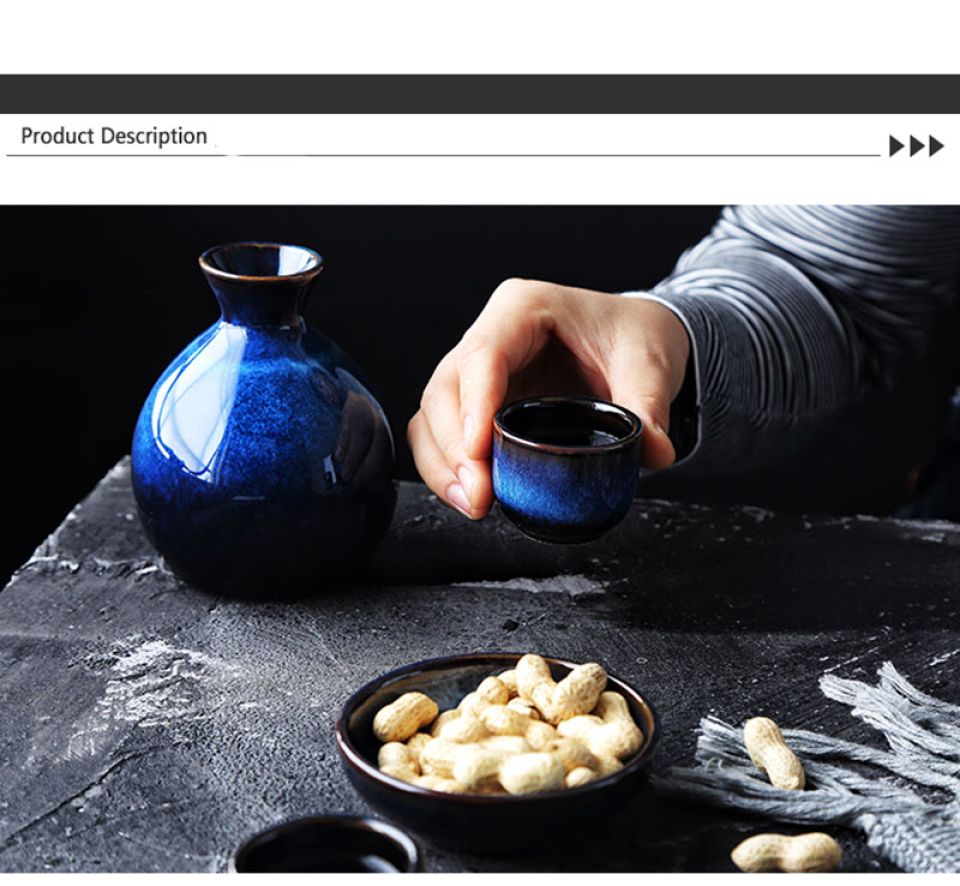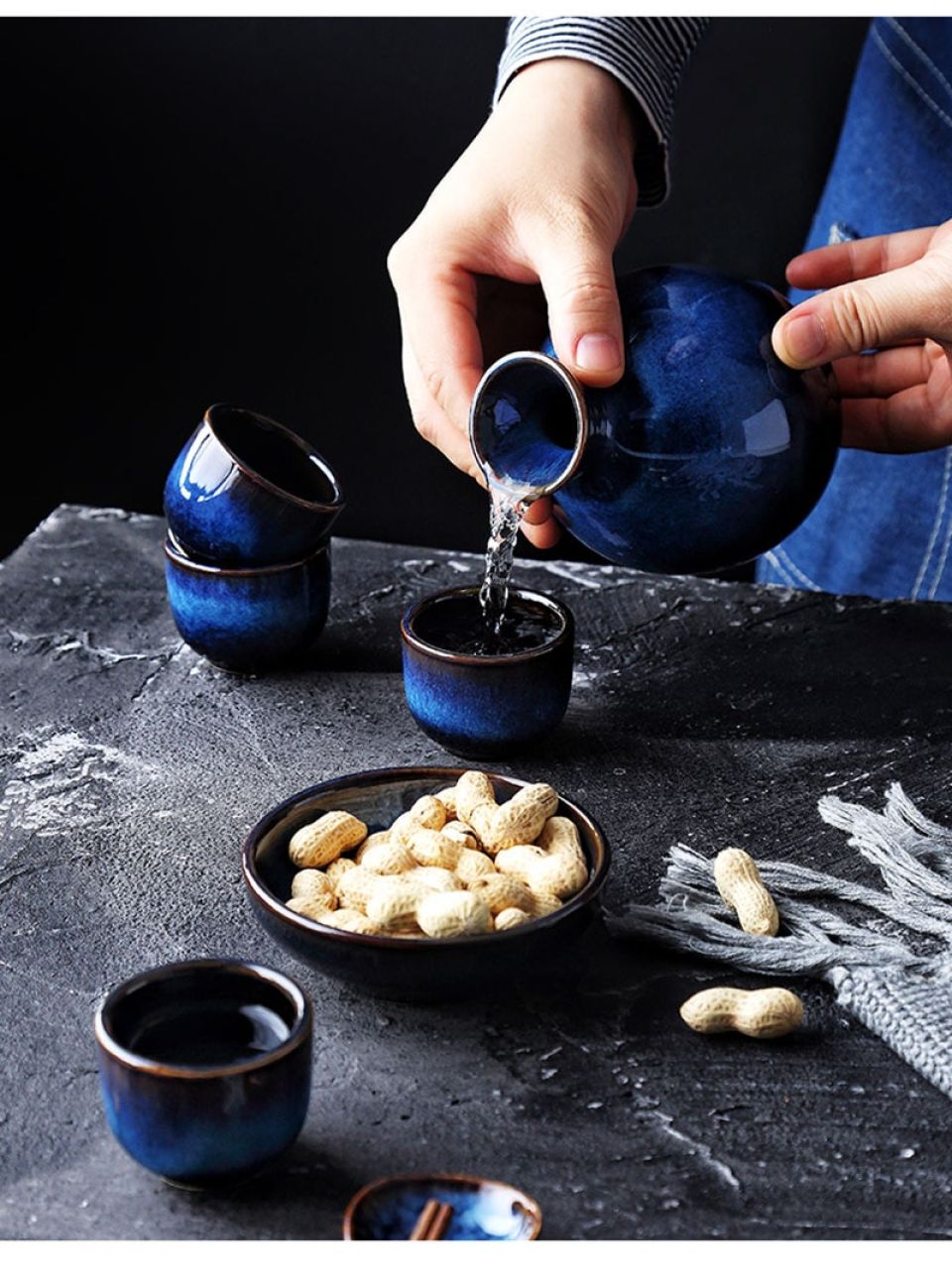 Japanese Blue Flask & Mini Cups Set (5pcs set)