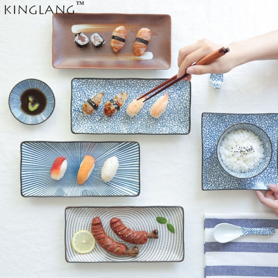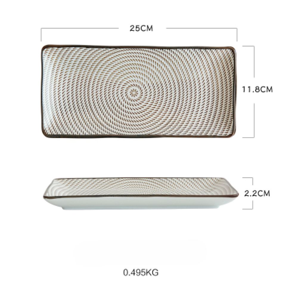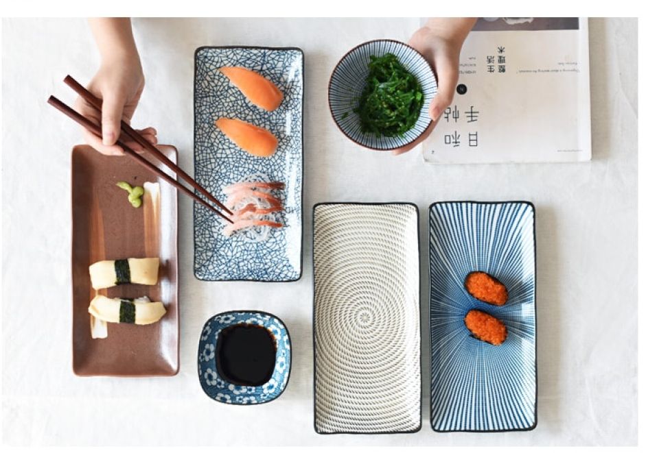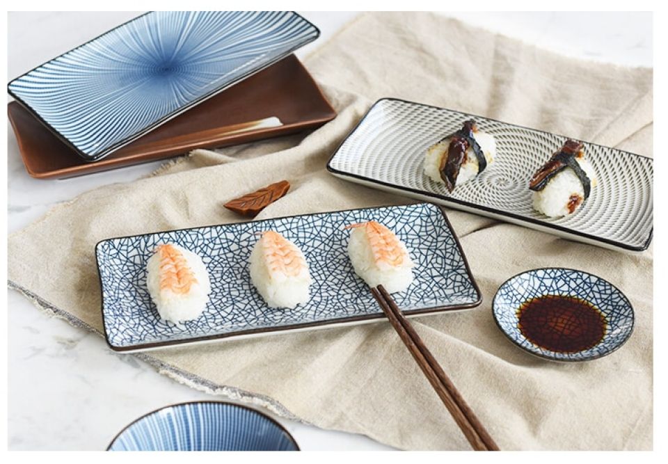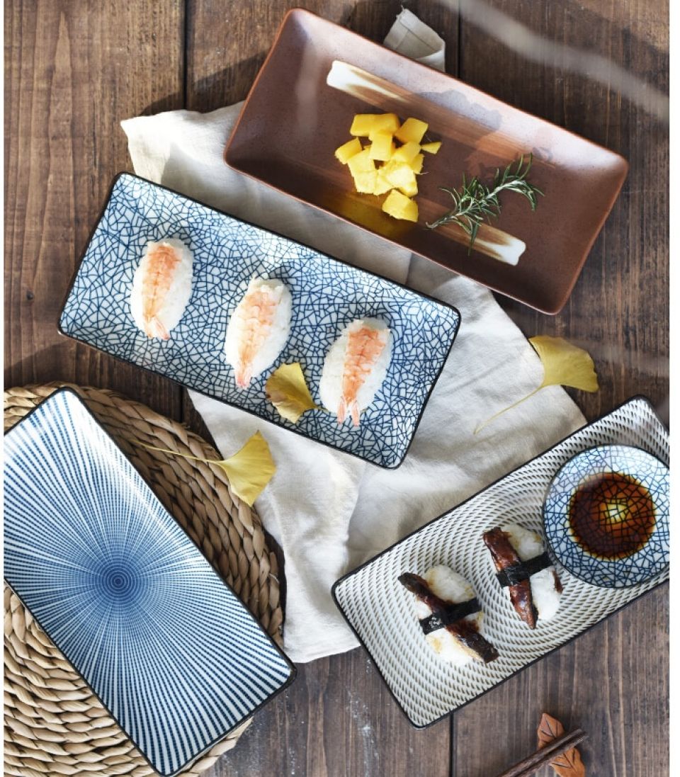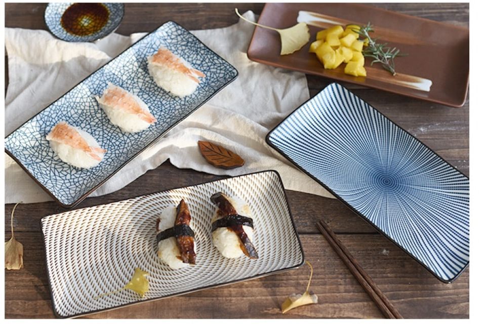 1. A simple rectangular ceramic plate. Fit for almost any food item to look classy.Â