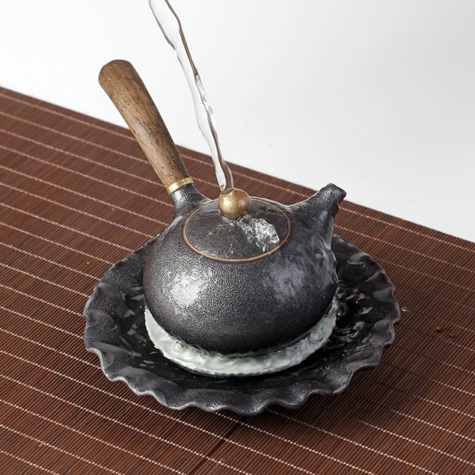 • The range of diversity among cultures is something that takes us all by surprise. You can find diversity in even the smallest aspects of day to day lives. For instance, Americans mostly use round stove kettles whereas the Japanese use oval kettles with unique designs. If you want to introduce diversity in your kitchen as well, you can check out our Japanese style ceramic tea set. This tea set comes with a ceramic kettle that has a unique nozzle to regulate the beverage flow. It is provided with an exquisite Ebony wood handle, that provides heat insulation and a firm grip for better balance.  It comes with an airtight lid that traps the flavor of your tea and enhances its taste. The kettle is available in two colors and will be a perfect gift for your friend who loves brewing tea. It enhances your tea flavor and is best for preparing green tea, black tea, fruit tea, and ginger tea.