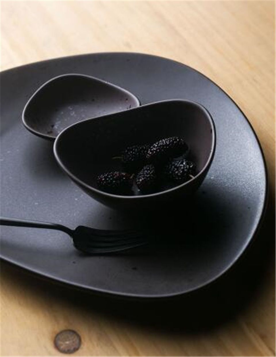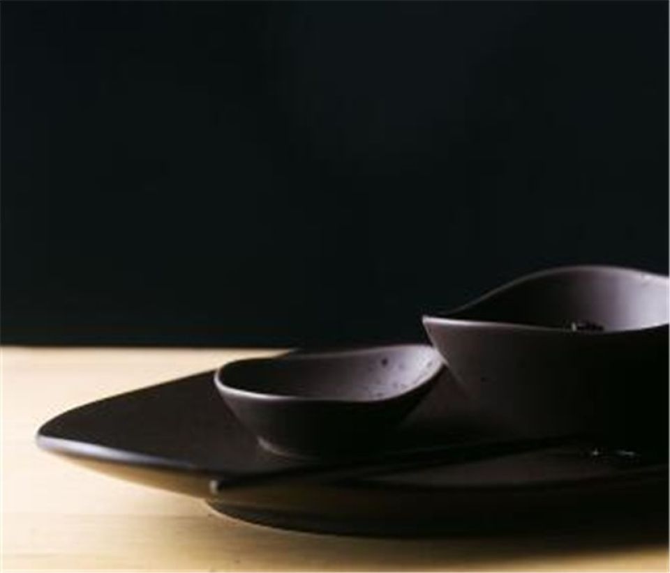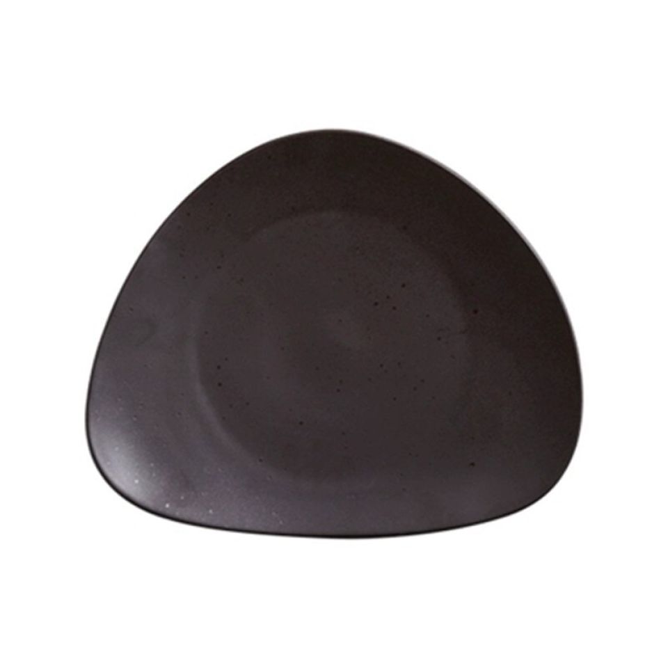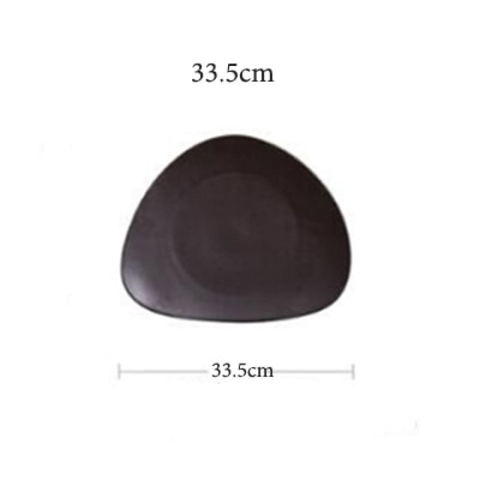 - Ceramic serving plate in chic black color can add a gorgeous finishing to any of your meal settings and servings. This sophisticated modern asymmetric serving tableware is what you need for luxury eating. The tableware has finished faceted edges that add an elegant touch to this beautiful serving tableware set. Â
