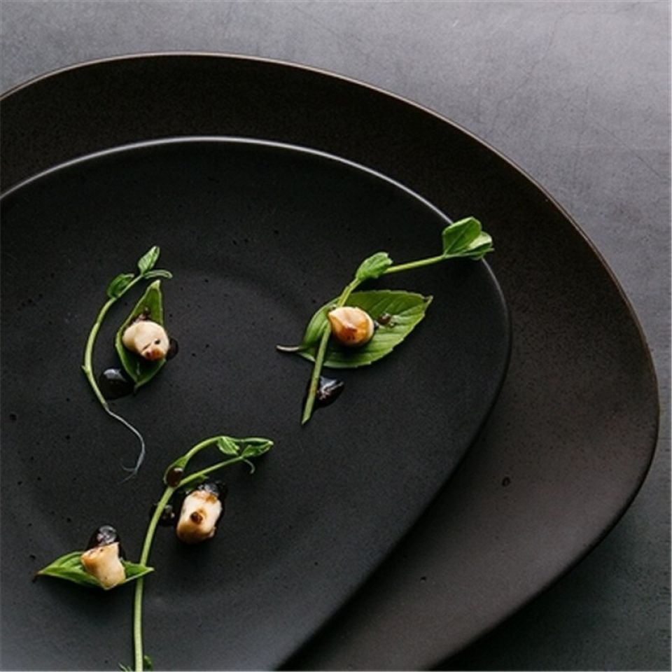 - It gives that stylish touch to your culinary and maintains good dining ethics for every dining situation. This ceramic tableware is easily washable and unbreakable. With them, you can make a good combination with either all three plates or the large asymmetrical plate and bowl for meals, medium and small asymmetric plates for snacks, and similar. They all have an oval pattern in black color and weigh 0.4 grams.