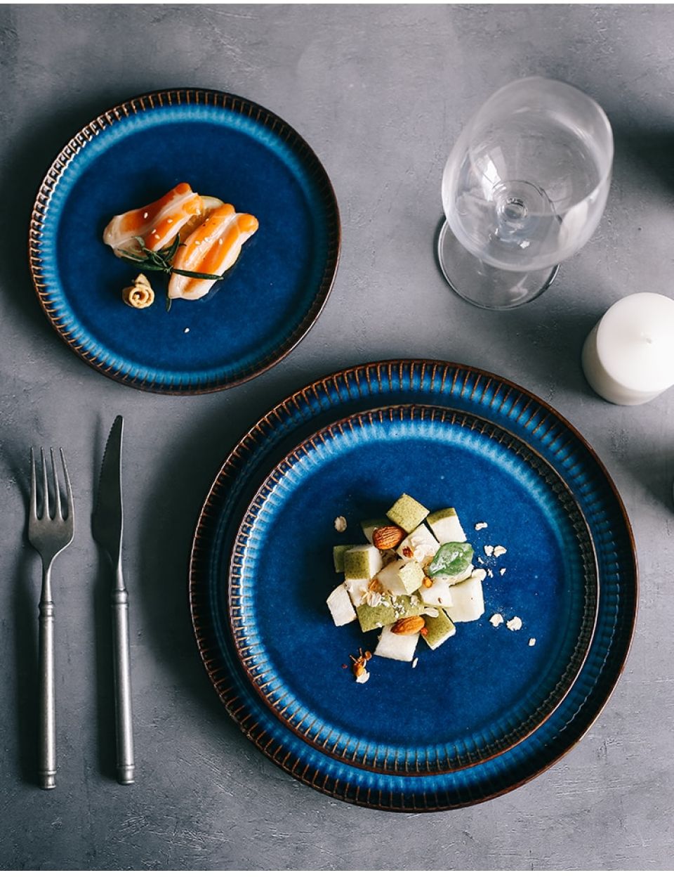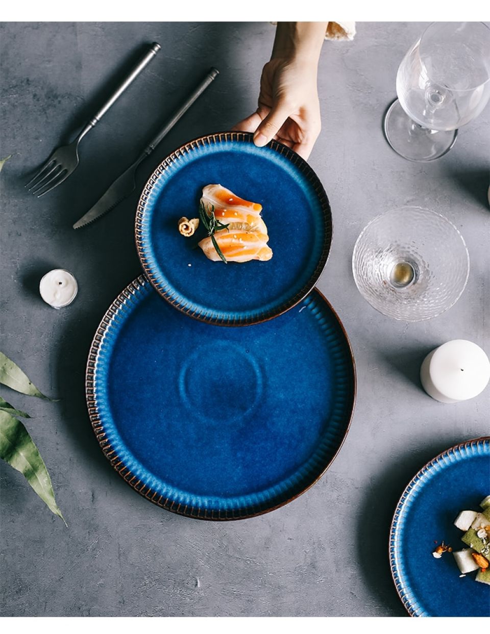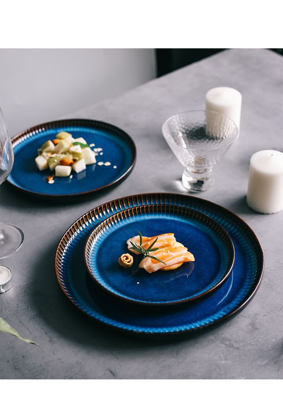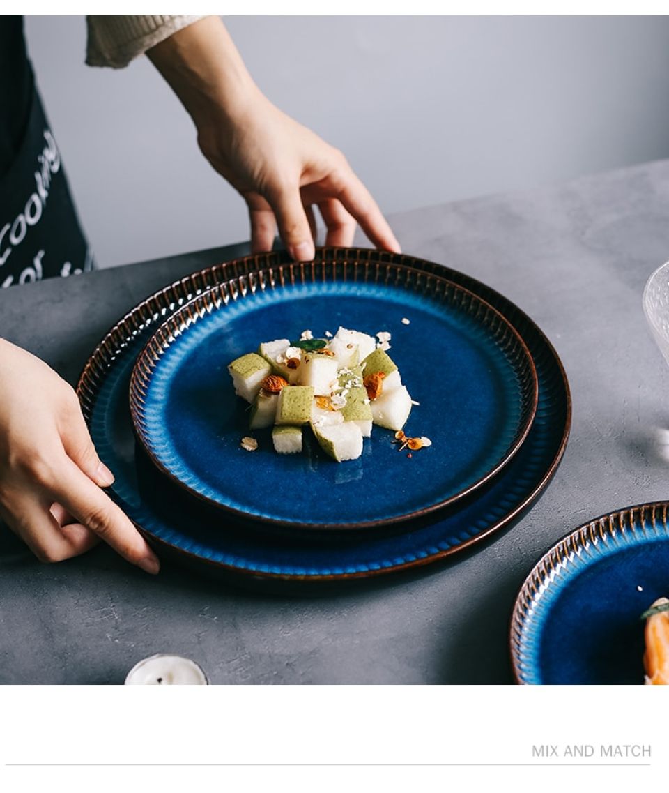 - You might have a grand celebration and a perfect setting but honestly, meals feel incomplete without pretty crockery. If you want a simple yet attractive dinnerware, the Blue Striped Ceramic plate might be the perfect fit for you. Inspired by the Scandinavian Nordic style, this plate promotes the idea of simplicity and minimalism. Perfect for everyday use, the ceramic plate has a smooth surface and is easy to maintain. Every individual prefers distinct meal sizes and our plate to comes in 3 different sizes- Large, Medium, and Small. The plate will especially suit monochrome dining tables and go well with minimalist cutlery. You can use the plate for serving your salads, main course meals, and desserts as well.