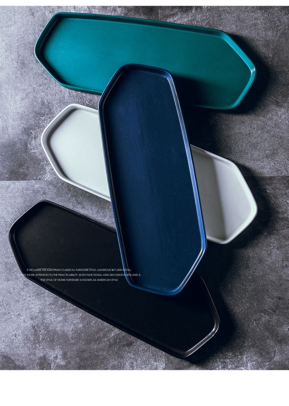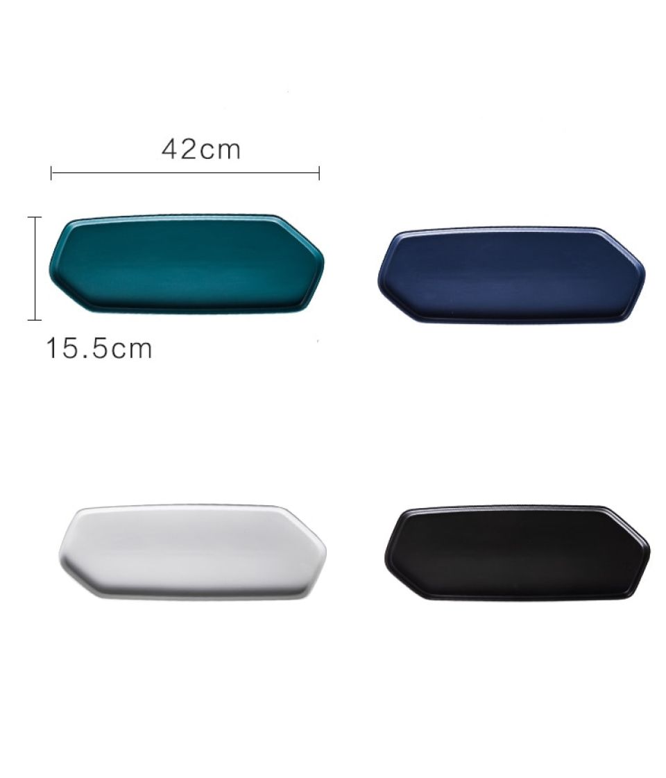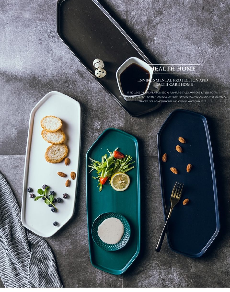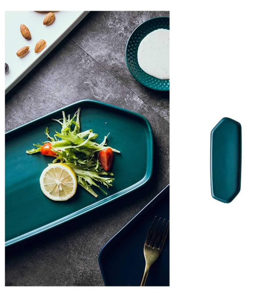 - The plate is available in 4 colors- seaweed green, navy blue, black, and white. All the colors are essential for balance and provide a great background for a luxe-looking meal.