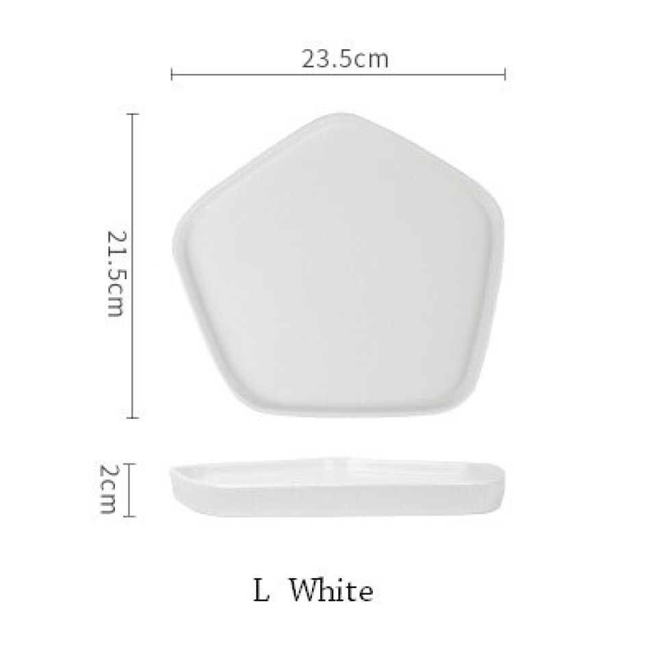 - Looking for an elegant yet functional serving plate for your steaks? Your search ends here. Take a look at this hexagonal ceramic steak plate and think about how beautiful your dishes would look on it. Inspired by the Scandinavian Nordic style, this plate has a minimalist design in four different neutral shades. The plate has a wide flat base that will make serving your dishes much easier. To meet your requirements, our plates come in two different sizes- Large and small. You can pick the size that suits your general meal portions and serve them in this container.