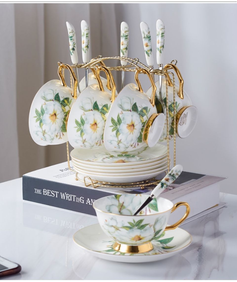 Freeson offers a Pastoral Porcelain Coffee Cup which has a stellar floral print all over the tableware. The set assure adorable glances, envy, and praise your way.
